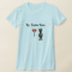 The material is a great quality that is hard to find with most tee shirts. Fabric was not see-through or thin at all, but was also very soft and comfortable. The shirt description states that it runs a little small, so I sized up one size for a perfect fit! I would definitely buy this type of tee shirt again because I love the fit and high quality fabric that I cannot find anywhere else. The printing was perfect and just as pictured. Loved the cute quote and really enjoy the tee in both the quality and design. I love quirky typography designs and funny quotes and I am extremely pleased with the overall quality and value I get at Zazzle!