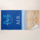 Wedding Hearts in Sand Family Monogram, Groom's Mr. Beach Towel.