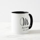 This handsome Mr mug features bold brush calligraphy with a red heart accent, a custom last name in elegant serif, and a wedding date, all on a crisp white background with a sleek black handle and interior. The expressive script paired with the black contrast creates a modern, romantic look. The last name and date are fully editable for a personalized keepsake. A wonderful gift for the groom, newlywed husband, or anniversary. Pair with the matching Mrs design for a his and hers set.