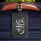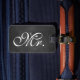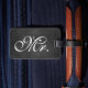A trendy Mr. luggage tag on a chalkboard background. Scroll down to see the coordinating Mrs. tag.