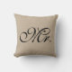 "Mr." in script for the groom / for him faux jute linen burlap rustic chic shabby country chic throw pillow