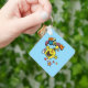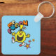 The key chain is made of metal and really sturdy. The flower design is really cheerful. The logo and colors are clear and crisp!