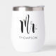 Custom thermal wine tumbler features Mr in modern black script with your married last name. Perfect gift for a groom-to-be, for a newlywed couple, or to give your sweetie on Valentine's Day! Visit our store or collection below for the Mrs tumbler that coordinates.