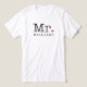 The groom gets his moment too with this handsome "Mr." tee featuring vintage typewriter-style typography, a red heart accent, and a customizable last name. A great match to the coordinating "Mrs." design, it is perfect for honeymoon travel, engagement photos, or celebrating newlywed life. Personalize the surname to make it yours.
