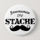 Mr. Mustache for the Groomsman. Make sure every guy in the wedding party knows their role with the Handlebar Mustache Manly Retro Groomsman Badge Button! Perfect for the groomsmen, best man, groom, or any other member such as the father of the bride or groom sporting a moustache or to continue the retro aesthetic of the wedding celebration, these buttons add a touch of humor and style. With its classic handlebar mustache design, it's perfect for the guy who rocks a trendy stache or just appreciates a touch of retro flair. Order now and give everyone in the wedding party a fun and functional way to show their title at the rehearsal dinner and reception