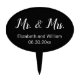 Mr. & Mrs. appears in an elegant white script at the top. Two lines of white display text are under the script. You can edit the text to show the names of the bride and groom as well as the wedding date. The candy topper is black.