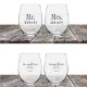 Mr. Mrs. Bride Groom Wedding Customized Stemless Wine Glass