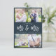 A trendy wedding announcement photo card with an image of newly weds and hand lettered brush script. The text can be personalized along with the bride and groom's image and back color.