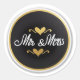 Minimal and timeless round wedding label in black-and-white calligraphy with tiny golden hearts. A classy touch for wedding favors, gift bags, or sealing envelopes.
