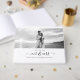 This simple, modern custom calligraphy guest book is perfect for a beautiful, chic wedding. The sophisticated black and white design features your names and wedding date in minimalist typography alongside a romantic and whimsical handwritten script saying "Mr and Mrs" under your favorite photo in black and white. On the back there is space for another favorite picture. This is the black and white version.