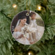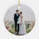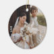 This modern and simple photo christmas ornament design features a full bleed photo with a minimalist circle text of the couple's names and wedding date.