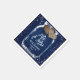 Rustic navy blue wedding paper napkins featuring a mason jar and burlap hearts on a barn wood background.