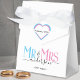 Celebrate your holy matrimony with this cute Mr. and Mrs. wedding party favor thank you box for wedding guests. Customize it by adding your last name / surname and wedding anniversary year date. Pink, blue and black elegant font with heart shape. Great for a bridal shower or anniversary / wedding reception dinner party for a husband and wife.