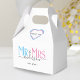 Celebrate your holy matrimony with this cute Mr. and Mrs. wedding party favor thank you box for wedding guests. Customize it by adding your last name / surname and wedding anniversary year date. Pink, blue and black elegant font with heart shape. Great for a bridal shower or anniversary / wedding reception dinner party for a husband and wife.