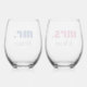 Mr. & Mrs. Personalized Wedding Chic Stylish Blue and Pink Script Stemless Wine Glass. Celebrate your special moments with this exquisite pair of seamless wine glasses, elegantly personalized with a “Mr. and Mrs.” monogram. Perfect for weddings, anniversaries, or any romantic occasion, these stemless glasses combine modern design with timeless charm. Each glass features a beautifully engraved monogram, adding a personal touch that makes every toast memorable. Make your celebrations even more special with these unique and thoughtful keepsakes.