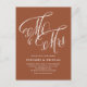 This customizable terracotta wedding invitation postcard brings a perfect blend of rustic elegance and modern convenience. Featuring "Mr. and Mrs." in beautiful rustic calligraphy. Personalize by adding names, date, time, venue and other details.
