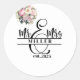 This round shape sticker is shown with a custom name Mr. & Mrs. print, personalize and change the name and year to yours with this template.