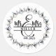 This round shape sticker is shown with a custom name Mr. & Mrs. print, personalize and change the name and year to yours with this template.