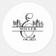 This round shape sticker is shown with a custom name Mr. & Mrs. print, personalize and change the name and year to yours with this template.
