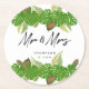 Mr. & Mrs. Tropical Leaves Script Wedding Round Paper Coaster