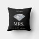 An elegant black and white wedding themed design perfect for newlyweds. The throw pillow is designed in black and white with a stylish black bow tie for the "Mr." and a beautiful sparkling diamond for the "Mrs." The established date is located on top which can be customized to your wedding date or a memorable date in your lives. An elegant script font is used for the bride's and groom's names located to the bottom. Customize the text and make it your own.