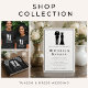 Celebrate your love with this beautiful black and white wedding silhouette sticker. Designed with an elegant wedding dress and tuxedo under a floral wedding arch, these stickers are the perfect decor for wedding receptions, bridal showers or engagement parties. Add the bride and groom's last name for a personalized touch.