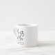Custom espresso mug with "Mr & Mrs" written in a large script and an illustration of two wedding rings joined together. Add your name and wedding date below.