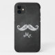 A vintage mustache on an illustrated chalkboard background decorates this case. It is easy to personalize with initials, Mr.,Mr. last name or to delete if preferred. the coordinating Mrs. Lips iPhone case is also available.