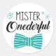 Mister Onederful boy first birthday themed party sticker. Use this sticker for party favors and more! Cute hipster bow tie theme.