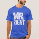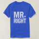 This groom’s tee proudly proclaims “Mr Right” in big white letters. A small icon of a top hat is placed next to the text, giving a formal yet fun touch. The royal blue shirt makes the message pop. It’s a confident, cheeky gift for the groom to wear at rehearsal dinners or while getting ready on the wedding day.