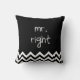 Mr. Right pillow with black and white chevron.