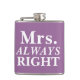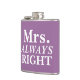Simple and cute, customizable Mrs. ALWAYS Right Bride's Flask.