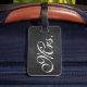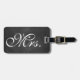 A trendy Mrs. luggage tag on a chalkboard background. Scroll down to see the coordinating Mr. tag.