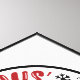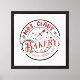 This farmhouse style art hanging features a logo style design with typography that says "Mrs Claus' Bakery." Colors include red and black.
