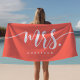 Mrs Coral And White Newlywed Bride Personalized Beach Towel