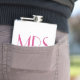 A chic Mrs wedding flask featuring "Mrs." in bold hot pink modern serif type with a custom last name in delicate gray calligraphy script beneath on a clean white background. The striking pink and gray combination creates a fresh, fashion-forward bridal keepsake. A beautiful personalized gift for the bride at her bachelorette party, bridal shower, or honeymoon. All text is fully customizable.