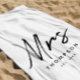 Mrs. Modern Black White Minimalist Script Beach Towel
