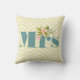 Mrs. Pale Yellow White Teal Zig Zag Throw Pillow