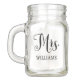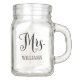 Personalized wedding mason jar design features Mrs. in black script with custom text for the bride's married last name. Two-sided design. Shop our store for the coordinating Mr. mason jar design.