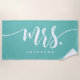 Mrs Teal And White Newlywed Bride Personalized Beach Towel