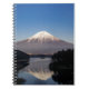Majestic Mt Fuji reflected in Lake Tanuki and framed by the river banks at nightfall.