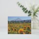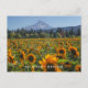 This postcard features a sunflower field with majestic Mt Hood in the background.