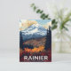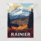 Celebrate the dramatic beauty of the Pacific Northwest with this stunning vintage travel poster postcard for Mount Rainier National Park, Washington. The artwork captures the majestic, snow-capped Mount Rainier towering over a vibrant landscape of autumn foliage, winding roads, and dark pine forests. This design is perfect for nature lovers, hikers, National Park enthusiasts, fans of retro WPA style art, or anyone who loves the fall season. A wonderful souvenir or gift that captures the scale and glory of this iconic volcano.