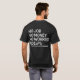 My 11 yo wore adult XL (5’7” 165#). The 8yo is small framed. She wore adult small and tied it in the back. Grandma wore adult large with long sleeve shirt underneath. Tall girl adult medium. Dark haired male adult large. Good quality dark Heather gray, Gildan brand shirt. -it was next up from basic choice and cost about $20 per shirt. Not too thick or thin. Washed and dried well, no major shrinkage. Not see-through. Can wear a bra under it fine. Screen print is just as shown and well done, front and back.