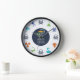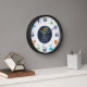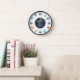 The size of the clock is dramatic and the abstract alcohol ink design is soothing and intricate at the same time. I chose the black frame that adds pop to the blue and gold design. The gold printing would be better in a slightly darker or larger font. I love it and I’m looking for just the right place in ny new apartment. I would recommend this clock for a personal gift or a present. I feel that the quality is excellent for the money! I’m a bit of a clock nut so I’m pretty particular about my purchases. The clock is larger in diameter than many if the clocks I have, so it stands out very well. I think a slightly darker printing color and a moderately larger size would best suit a professional decor or add more impact in a work place item.