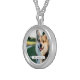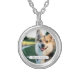 I chose gold plated so that the metal would not react with my skin oils and perspiration. But, I changed the necklace from the gold plated one to a sterling silver. My skin cells will tarnish the silver. But it will not look as bad if some portion of the gold plated necklace somehow became compromised. Zazzle did a find job turning the picture into a pendant for me. As you can see, the colors and the printing of the final product, match the preview. The picture I took is not very clear. But I am pleased with the product I received.