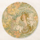 Mucha Lilies Art Nouveau Language of Flowers Round Paper Coaster