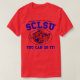 My 11 yo wore adult XL (5’7” 165#). The 8yo is small framed. She wore adult small and tied it in the back. Grandma wore adult large with long sleeve shirt underneath. Tall girl adult medium. Dark haired male adult large. Good quality dark Heather gray, Gildan brand shirt. -it was next up from basic choice and cost about $20 per shirt. Not too thick or thin. Washed and dried well, no major shrinkage. Not see-through. Can wear a bra under it fine. Screen print is just as shown and well done, front and back.