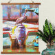 The Wood-Topped Wall Tapestry features vivid colors, crisp lines, and a rustic open wooden frame.