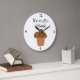This fun wall clock says "It's muffin o'clock!" and has a drawing of a yummy double choc chip muffin in a crinkled case. A tempting treat for anyone who loves home baking or store bought muffins.
